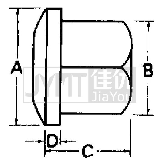 A: 法蘭直徑B: 對邊距離C: 全高D: 法蘭厚度E: 螺紋尺寸F: 重量